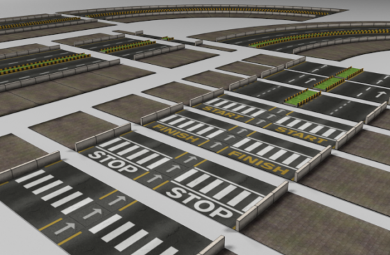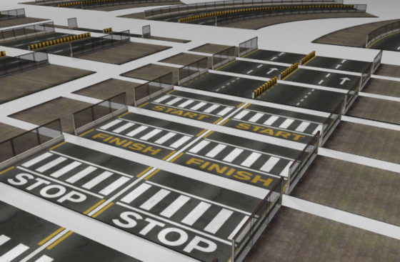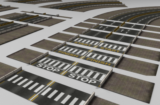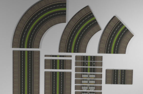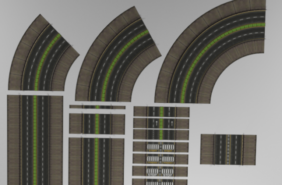 2. 4 variations of road elements to be mixed to create different variations of tracks .