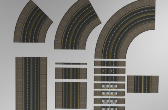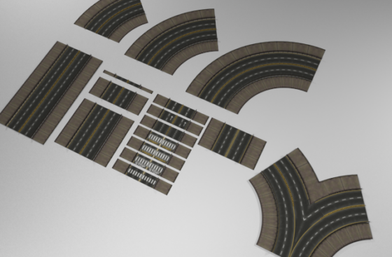 3D roads elements , assemble to create various tracks of various shapes , best suited for racing games , building city, roads are highly optimized for mobile games.