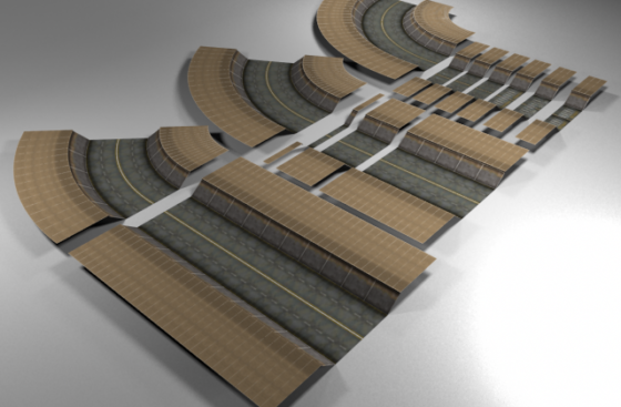 3D roads elements , assemble to create various tracks of various shapes , best suited for racing games , roads are highly optimized for mobile games.